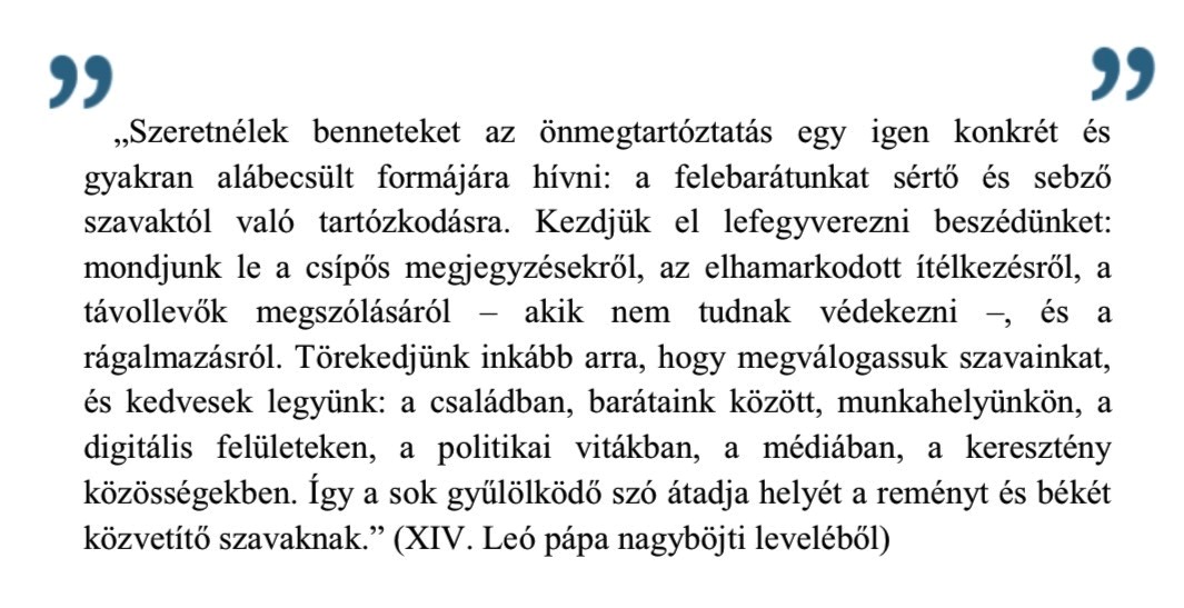 “Oda kell tehát figyelnünk arra a sok jóra, amely a világban jelen van, nehogy megkísértsen bennünk annak gondolata, hogy teljesen elborított bennünket a rossz és az erőszak.” (Ferenc pápa)