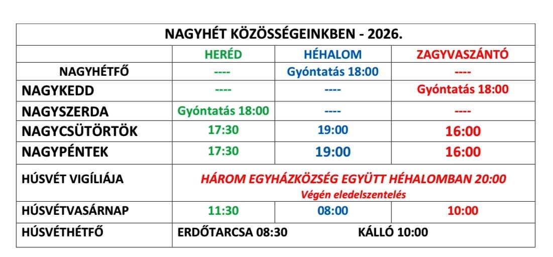 Heréd, Héhalom, Zagyvaszántó egyházközségek előre tekintő meglátások