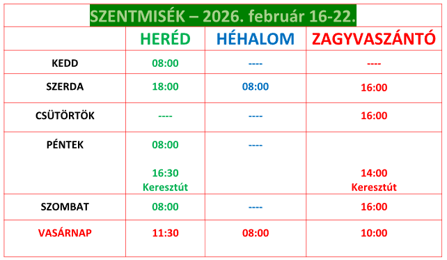 Heréd, Héhalom, Zagyvaszántó Római Katolikus Egyházközségei